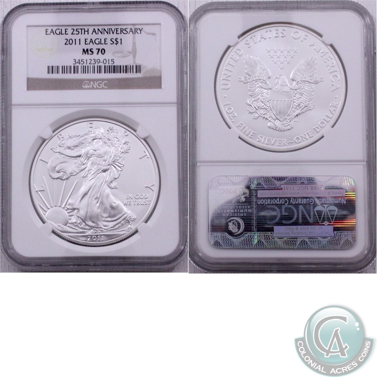 2011 $1 Silver Eagle 25th Anniversary 1oz Fine Silver NGC Certified MS-70. (Tax Exempt)