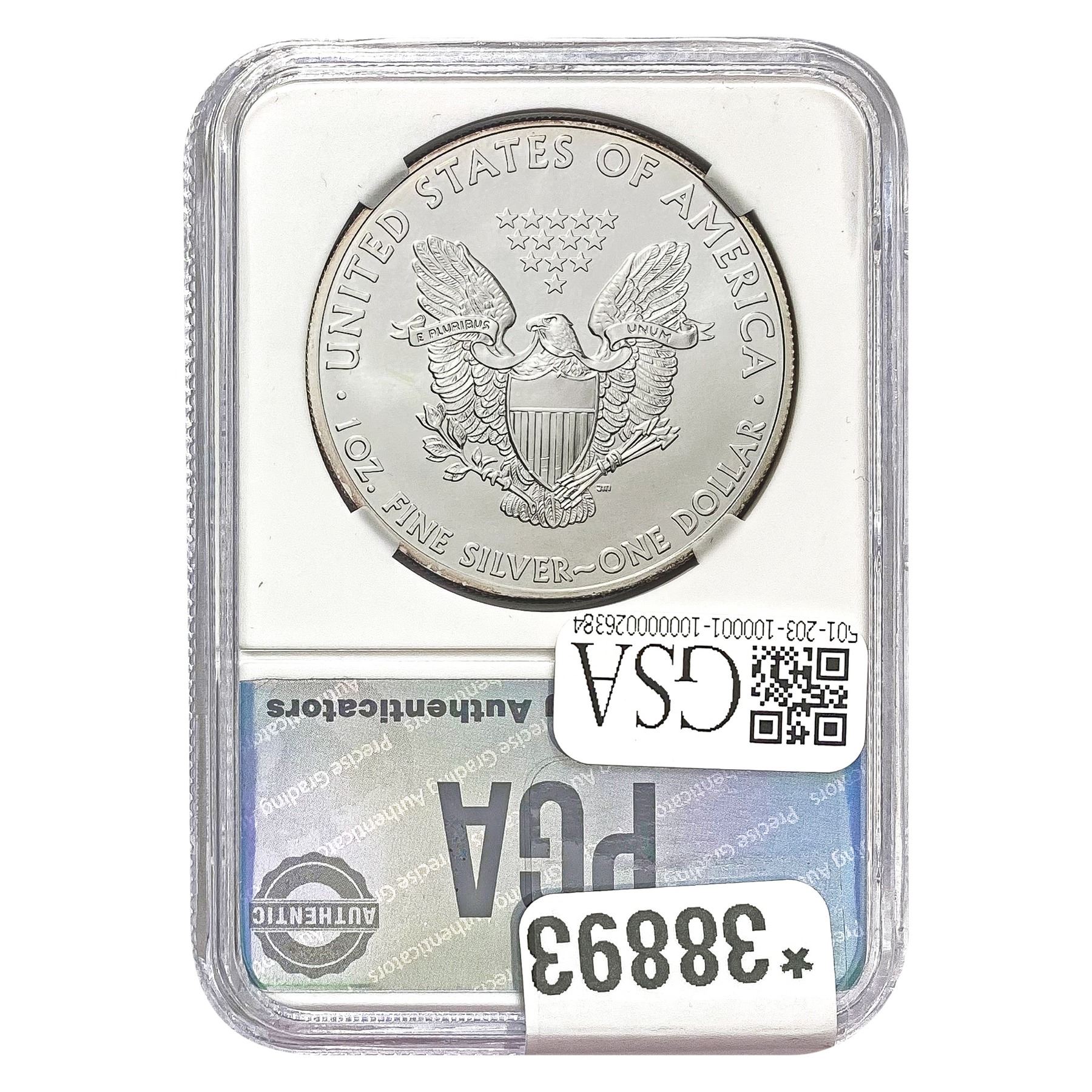 COINS AND CURRENCY LISTED IN GSA’S CATALOG AS GRADED AND ENCAPSULATED BY PCGS, NGC, ANACS, ICG, PCGS CURRENCY, PMG, PCGS BANKNOTE GRADING, CMC OR ANY OTHER THIRD-PARTY GRADING SERVICE ARE LIKEWISE SOLD “AS-IS” EXCEPT AS EXPRESSLY SET FORTH HEREIN. ALL THIRD-PARTY GRADING SERVICE GUARANTEES, INCLUDING AUTHENTICITY, ARE THE SOLE RESPONSIBILITY OF THE THIRD-PARTY GRADING SERVICE AND NOT WARRANTIES OR GUARANTEES OF GSA. BIDDERS SHOULD CONTACT THESE THIRD-PARTY GRADING SERVICES DIRECTLY WITH RESPECT TO ANY CLAIMS OR QUESTIONS THEY MAY HAVE CONCERNING THEIR GUARANTEES AND WARRANTIES. BIDDERS ACKNOWLEDGE AND AGREE THAT AUCTIONEER IS NOT BOUND BY OR LIABLE FOR ANY OPINION OR CERTIFICATION BY ANY THIRD-PARTY GRADING SERVICE. REMOVAL OF A PRODUCT FROM ITS PROTECTIVE CASING OR HOLDER OR ALTERATION OF ANY COIN HOLDER WAIVES ALL RIGHTS CONCERNING THE PRODUCT CONTAINED THEREIN.