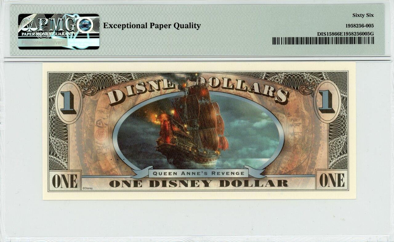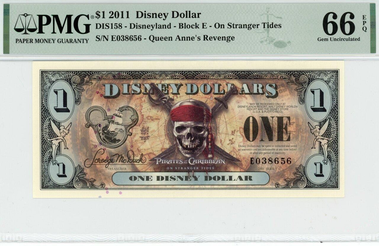 One 2011 $1 Stranger Tides Disney Dollar PMG 66EPQ.