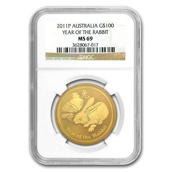 One piece 2011 1 oz Gold Lunar Year of the Rabbit MS-69 NGC (Series II)