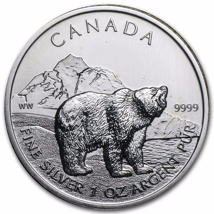 2011 1 oz Silver Canadian Grizzly (Abrasions, Spotted)