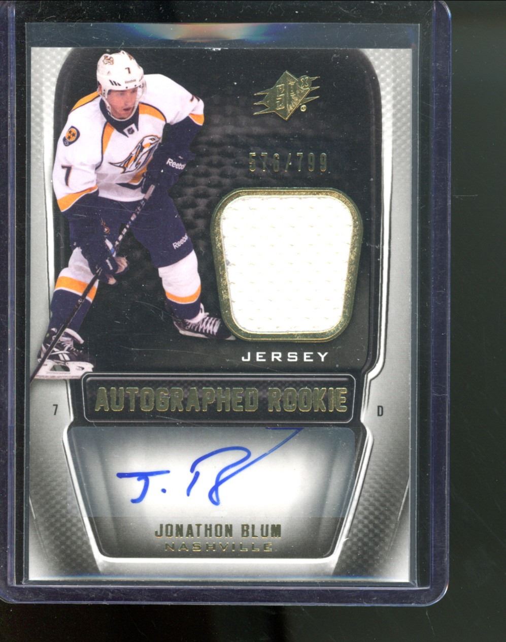 2011-12 SPx #187 Jonathon Blum JSY AU RC 576/799