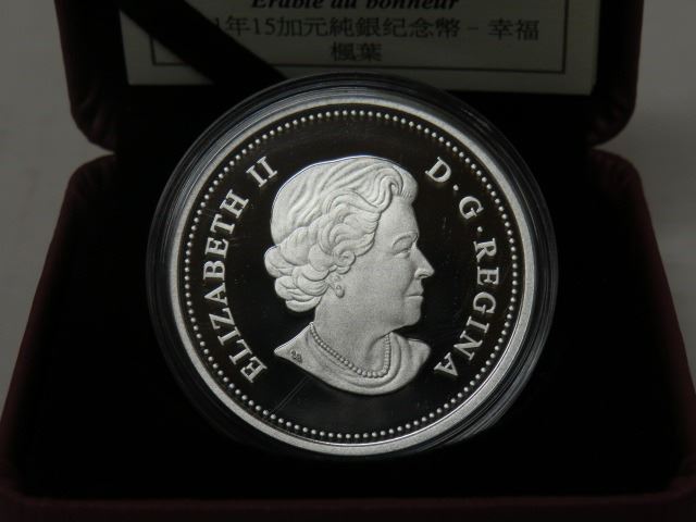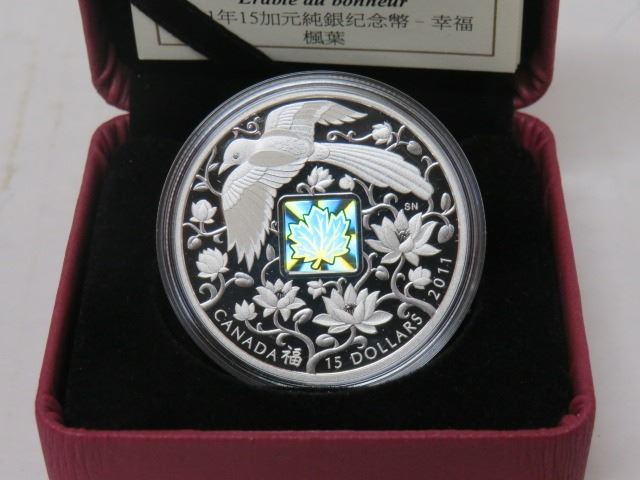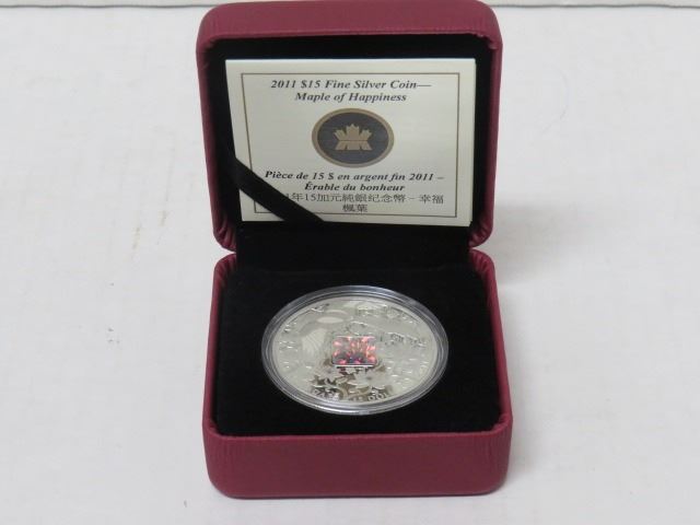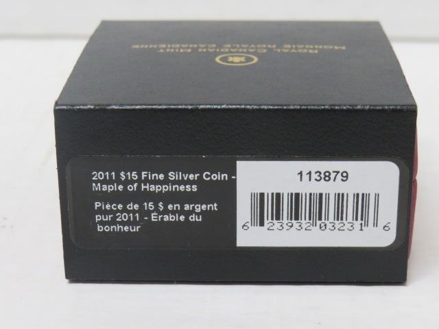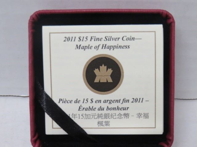 2011 $15 FINE SILVER COIN, MAPLE LEAF OF HAPPINESS