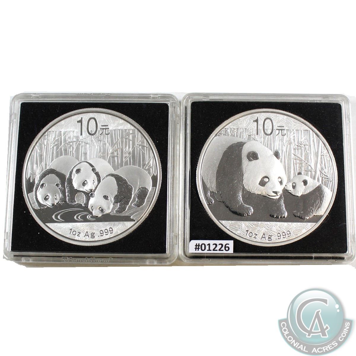 2011 & 2013 China 10 Yuan 1oz .999 Fine Silver Pandas in Square Capsules. 2pcs (TAX Exempt)