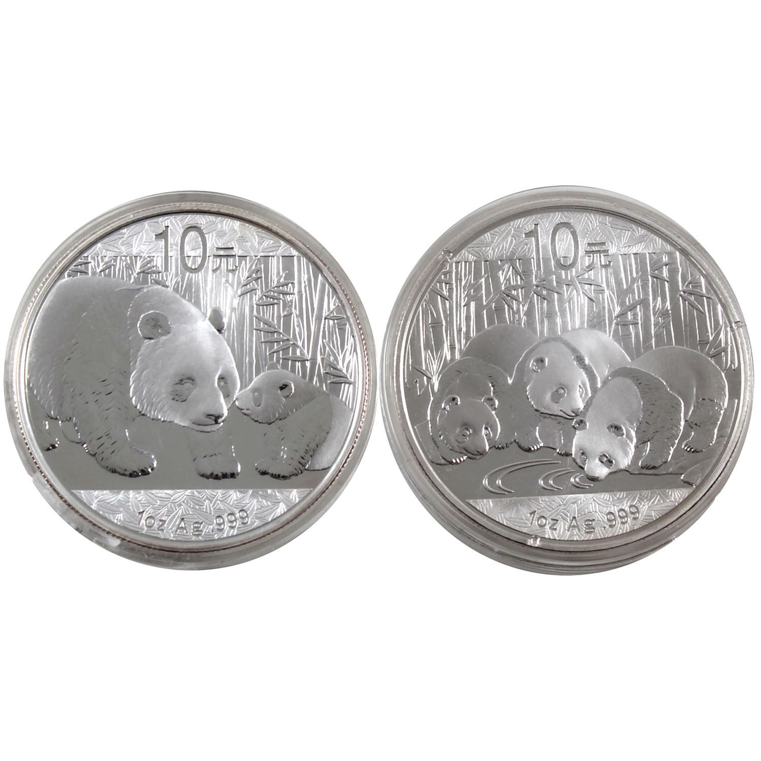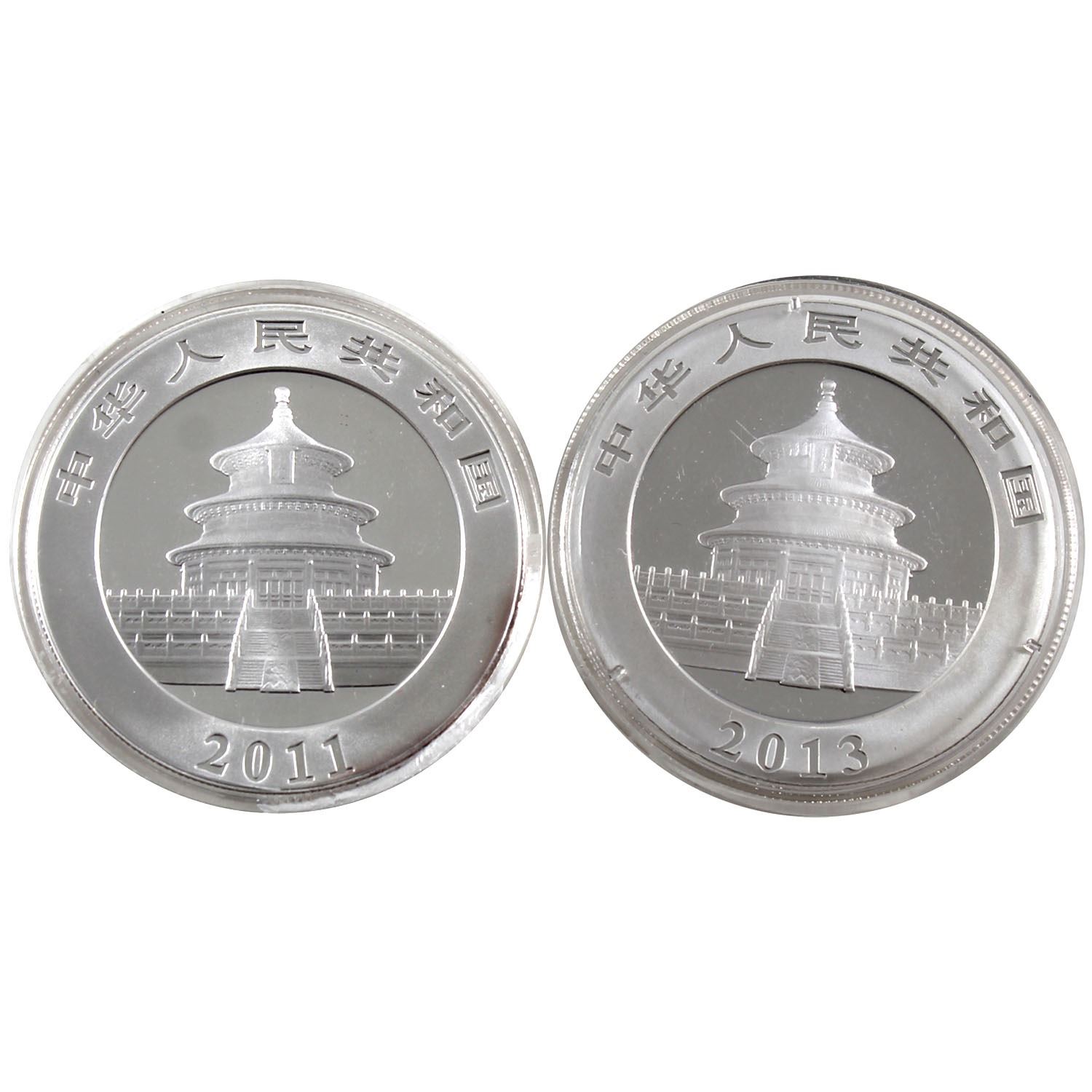 2011 & 2013 China 1oz .999 Fine Silver Pandas. 2pcs (TAX Exempt)