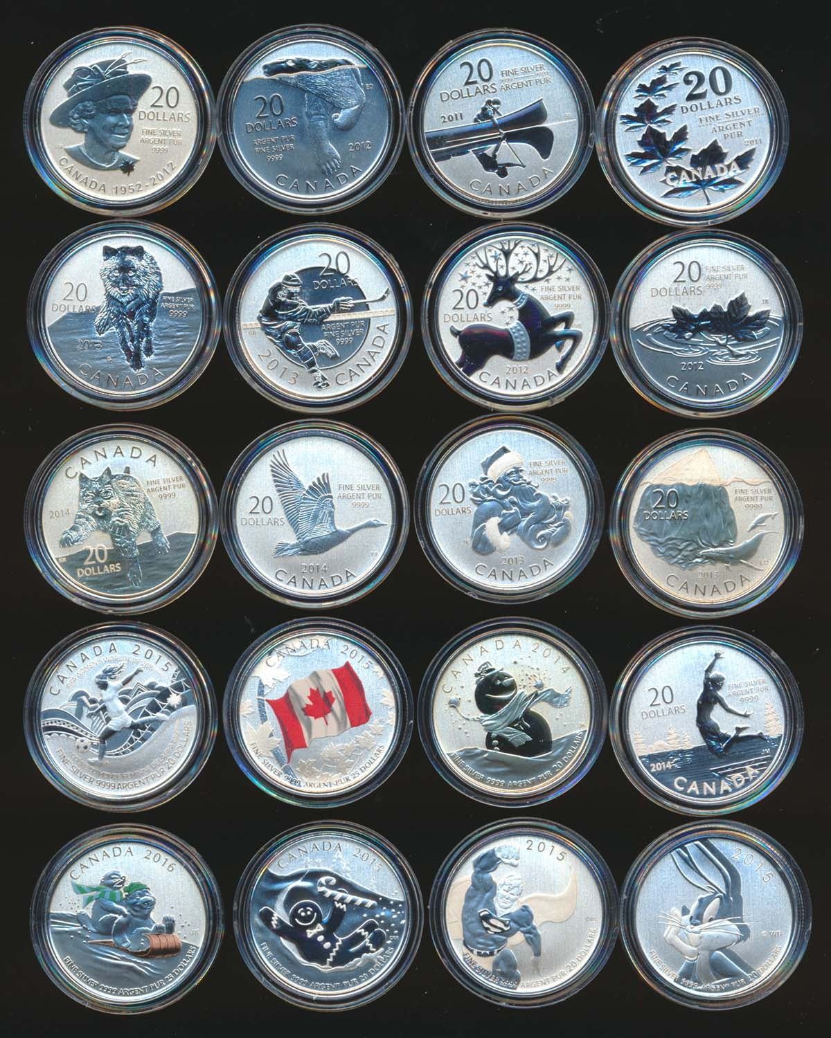 2011-2015 Collector Set of $20.00 f0r $20.00 Series .9999 5.0 oz. w/Cards in Official Box