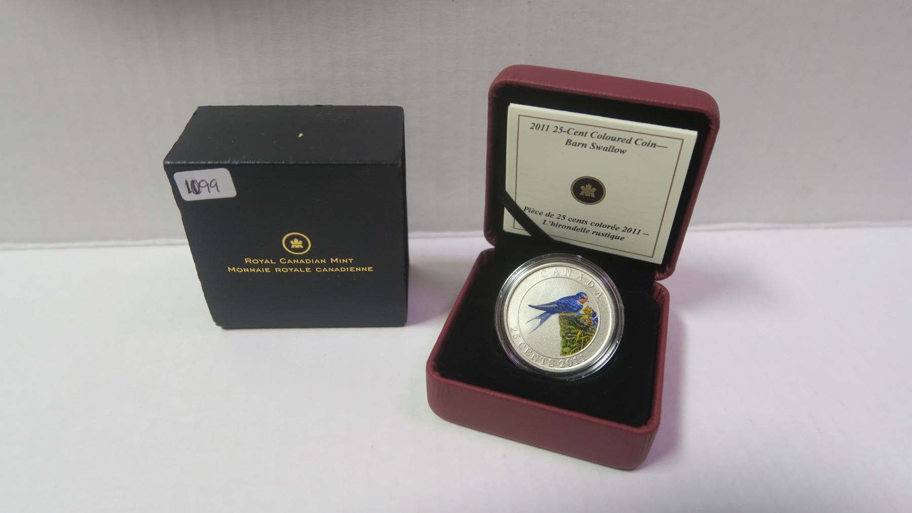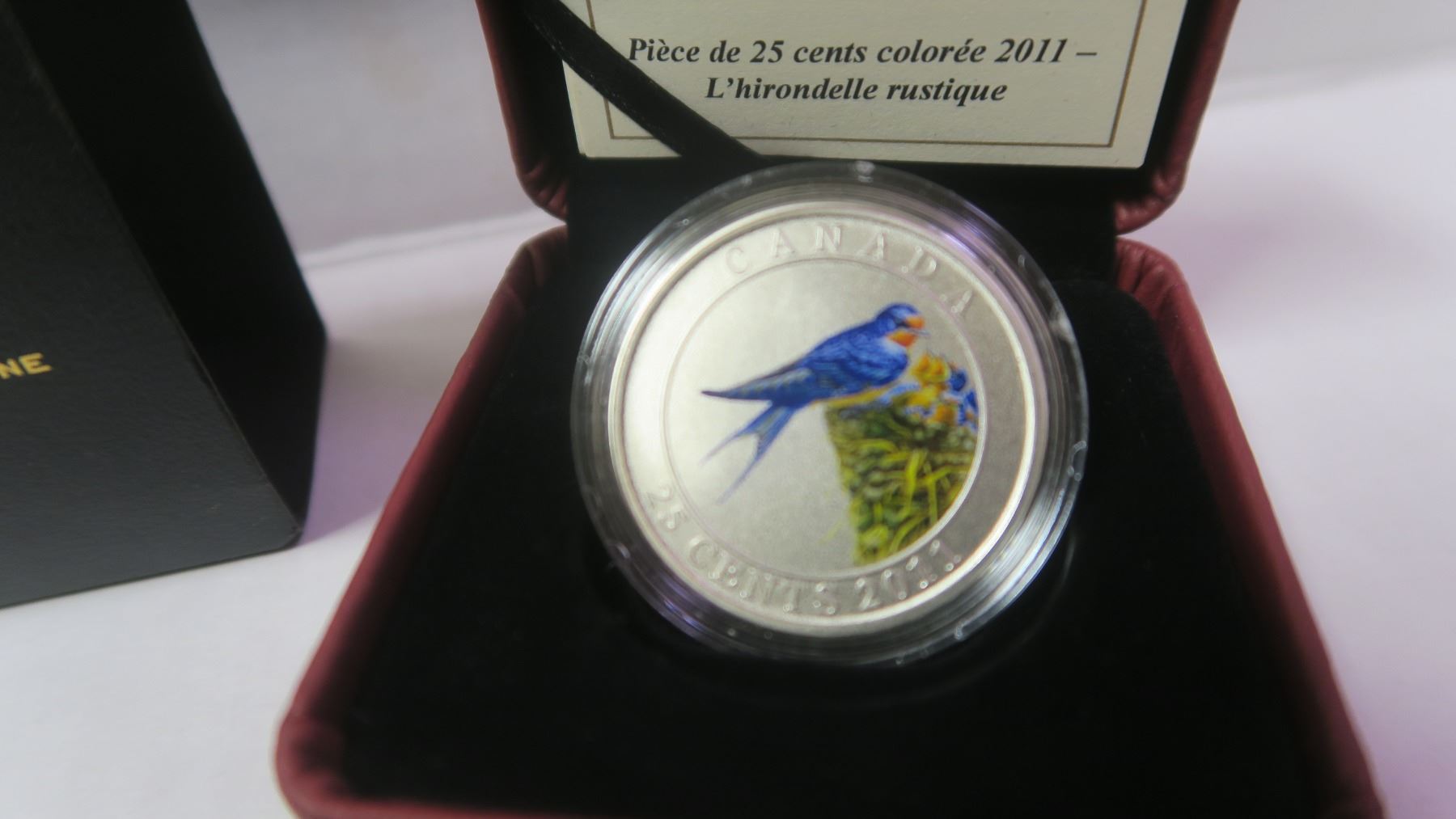 2011 25 cent Coloured coin - " Barn Swallow" # 08168/14,000