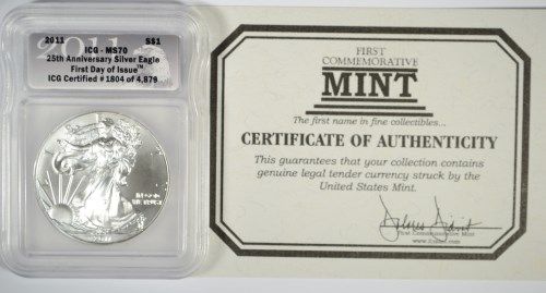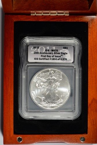 2011 25Th ANNIVERSARY AMERICAN SILVER EAGLE, ICG MS-70 FIRST DAY OF ISSUE