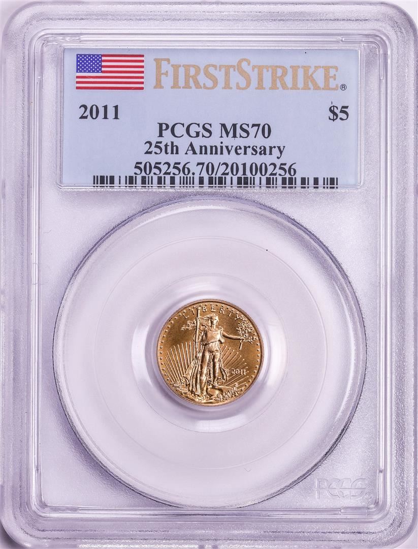 One 2011 $5 American Eagle Gold Coin PCGS MS70 First Strike. PCGS Graded.