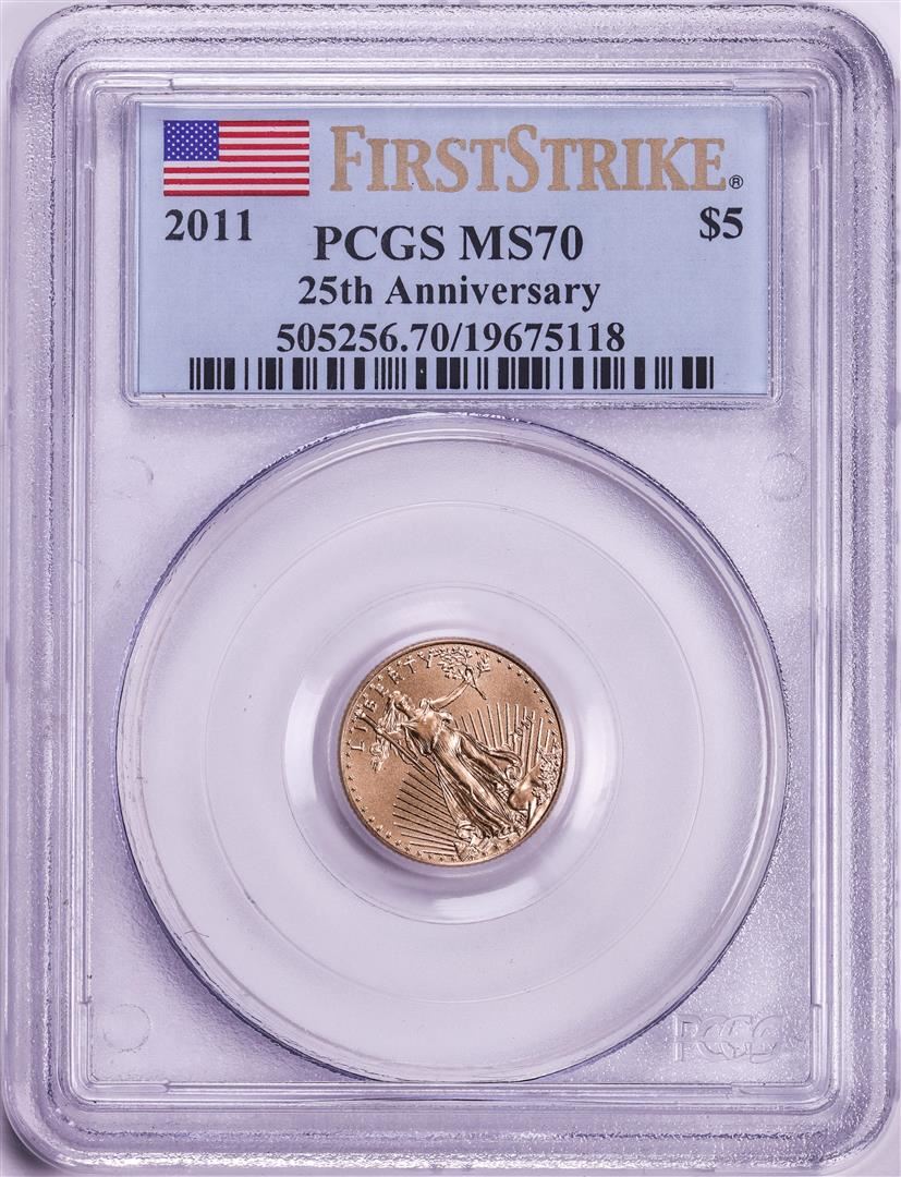 One 2011 $5 American Eagle Gold Coin PCGS MS70 First Strike. PCGS Graded.