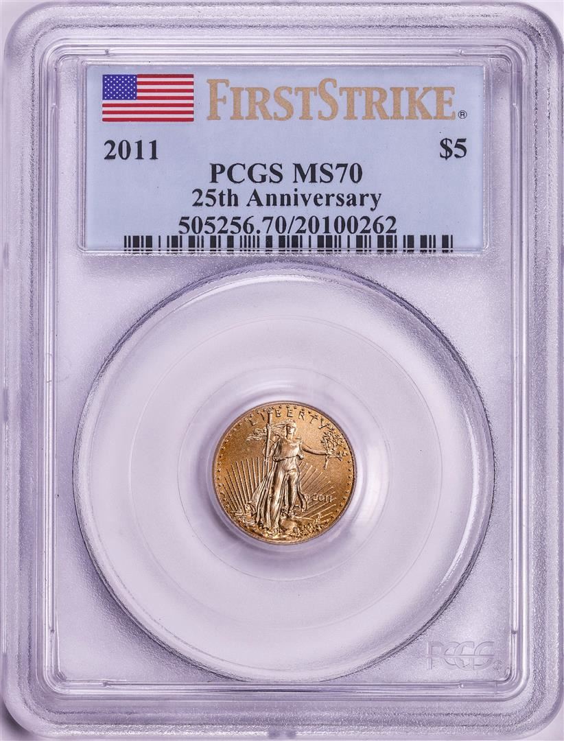 One 2011 $5 American Eagle Gold Coin PCGS MS70 First Strike. PCGS Graded.