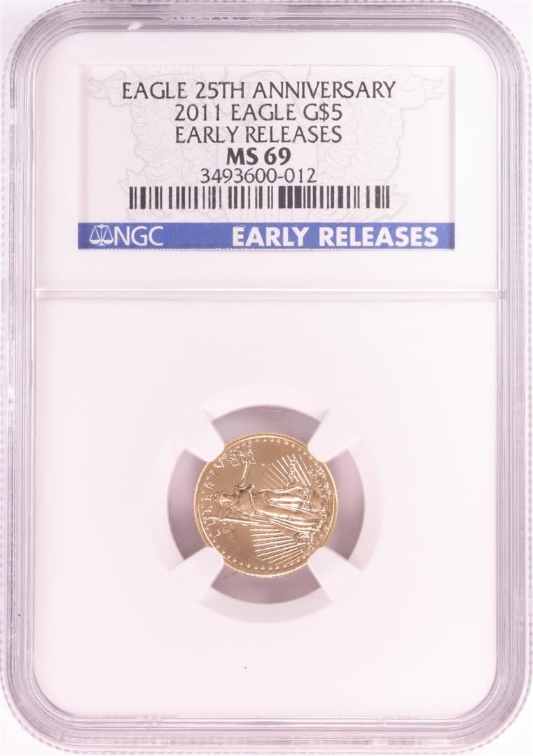 One 2011 $5 American Gold Eagle Coin NGC MS69 Early Releases. NGC Certified.