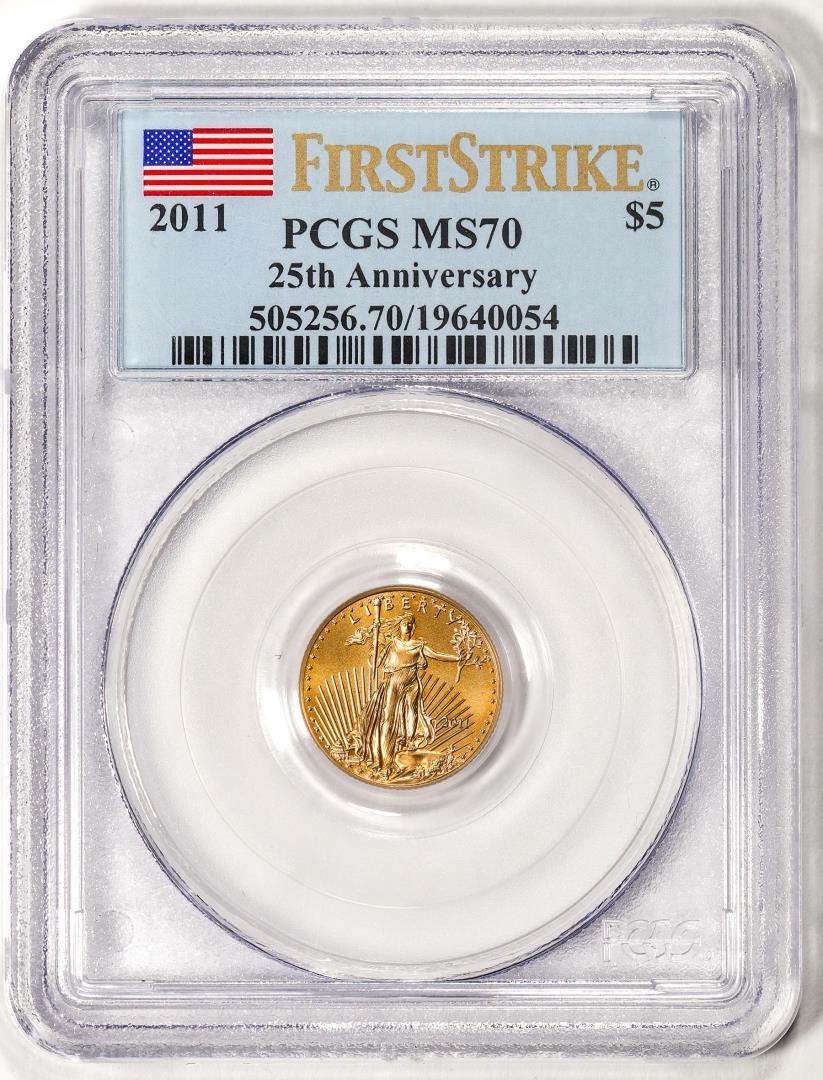 2011 $5 American Gold Eagle Coin PCGS MS70 First Strike 25th Anniversary