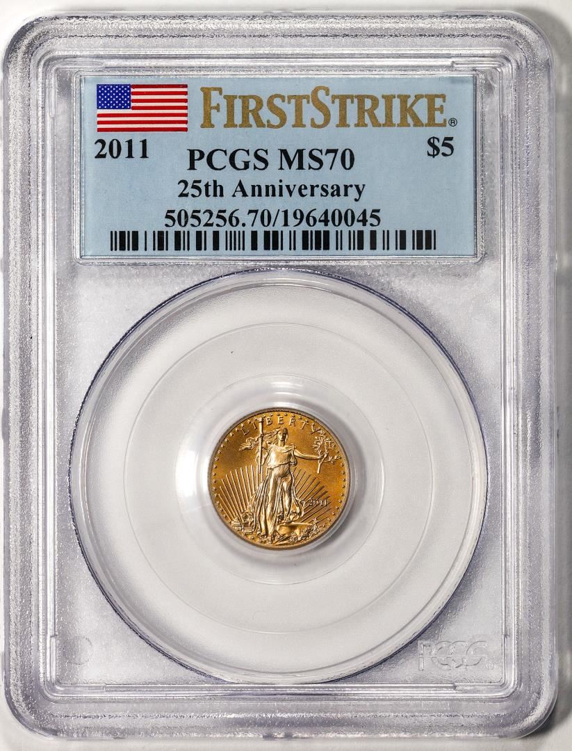 2011 $5 American Gold Eagle Coin PCGS MS70 First Strike 25th Anniversary
