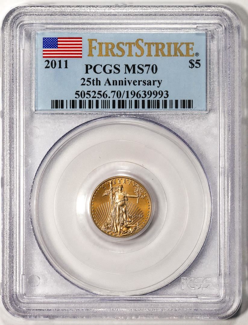 2011 $5 American Gold Eagle Coin PCGS MS70 First Strike 25th Anniversary