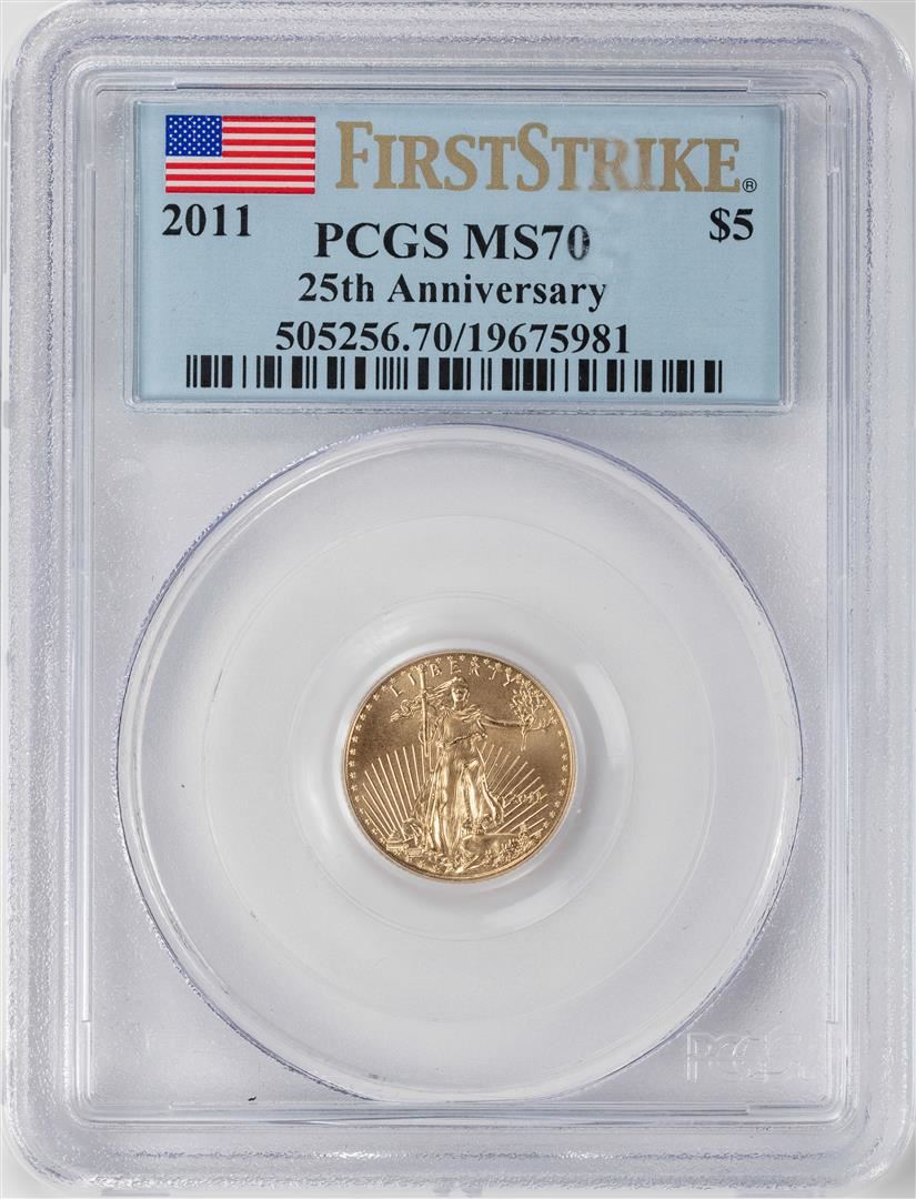 One 2011 $5 American Gold Eagle Coin PCGS MS70 First Strike. PCGS Graded.