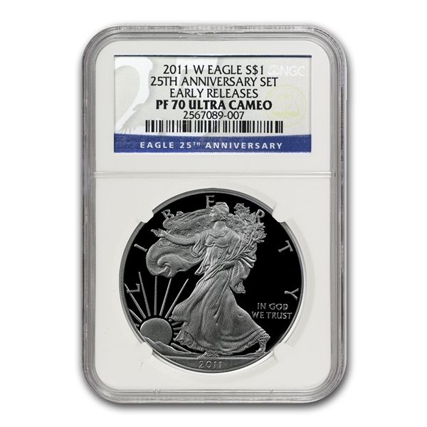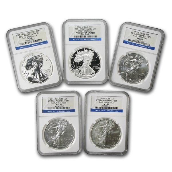 2011 (5 Coin) Silver Eagle Set MS/PF-70 NGC 25th Anniv **|**|** 2011 (5 Coin) Silver Eagle Set MS/PF-70 NGC 25th Anniv ER ; MSRP: $3500