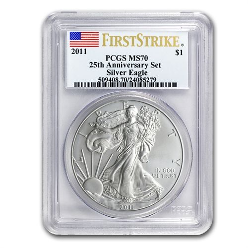 2011 (5 Coin) Silver Eagle Set MS/PR-70 PCGS 25th Anniv **|**|** Year: 2011 ; Mint Mark: 70 ; Grade: varies ; Denomination: $1 ; MSRP: $2600