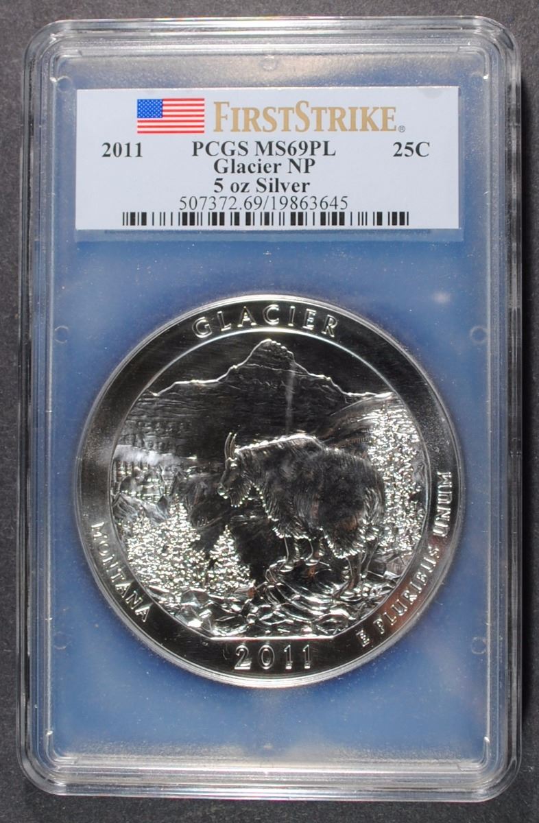2011 5 Oz. SILVER GLACIER NATIONAL PARKS QUARTER, PCGS MS-69 DMPL 1st STRIKE