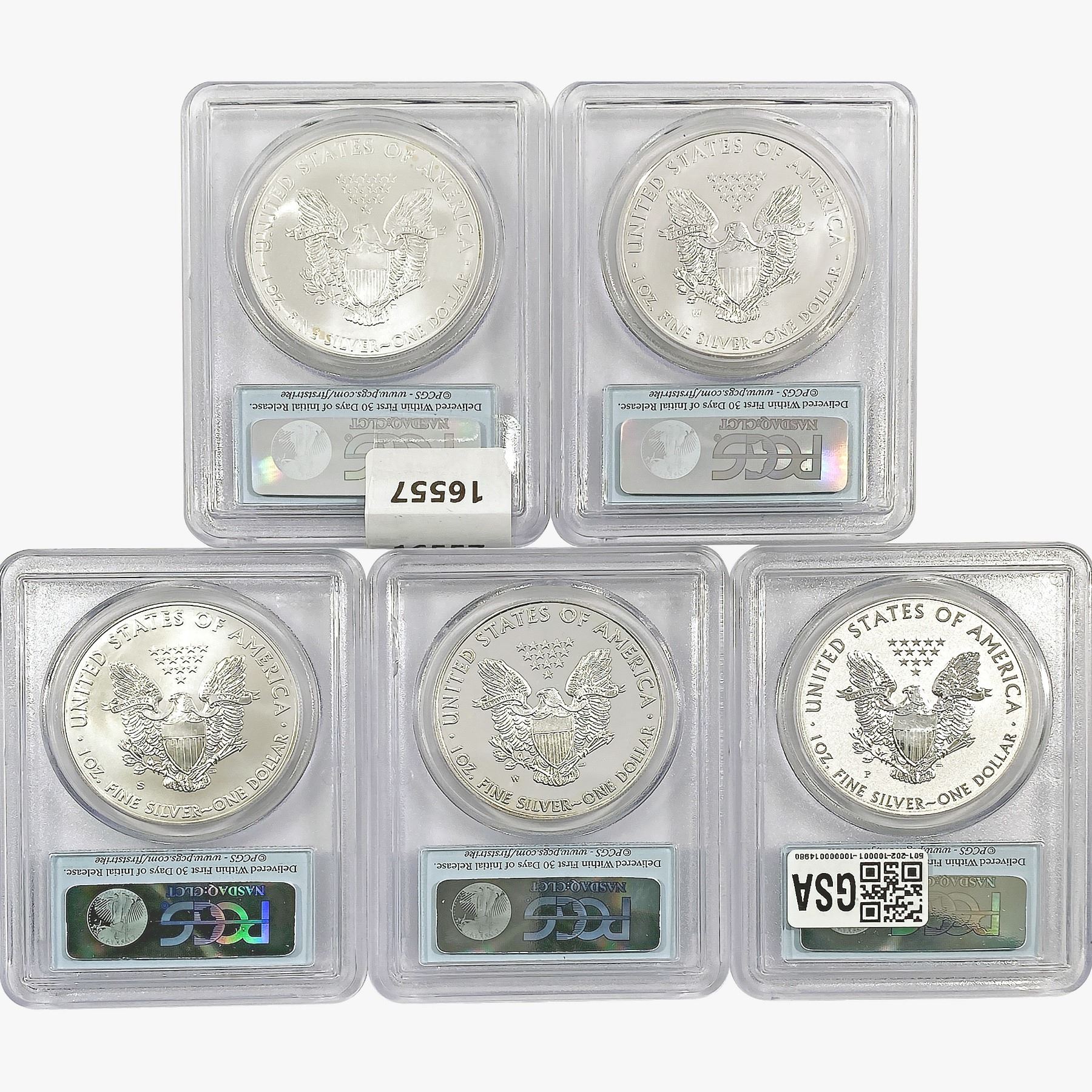 e. Coins sold referencing a third-party grading service are sold “AS IS” without any express or implied warranty, except for a guarantee by GSA that they are genuine. Removal or alteration of the holder, voids all of Bidder’s claims concerning that Product. Certain warranties may be available from the grading services and Bidders are referred to them for further details: Numismatic Guaranty Corporation (NGC), PO Box 4776, Sarasota, FL 34230, www.ngccoin.com/services/writtenguarantee.asp; Professional Coin Grading Services (PCGS), PO Box 9458, Newport Beach, CA 92658, www.pcgs.com/guarantee.html; ANACS, 6555 S. Kenton St., Ste. 303, Englewood, CO 80111; and Independent Coin Grading Co. (ICG), 7901 East Bellview, Ave., Suite 50, Englewood, CO 80111.