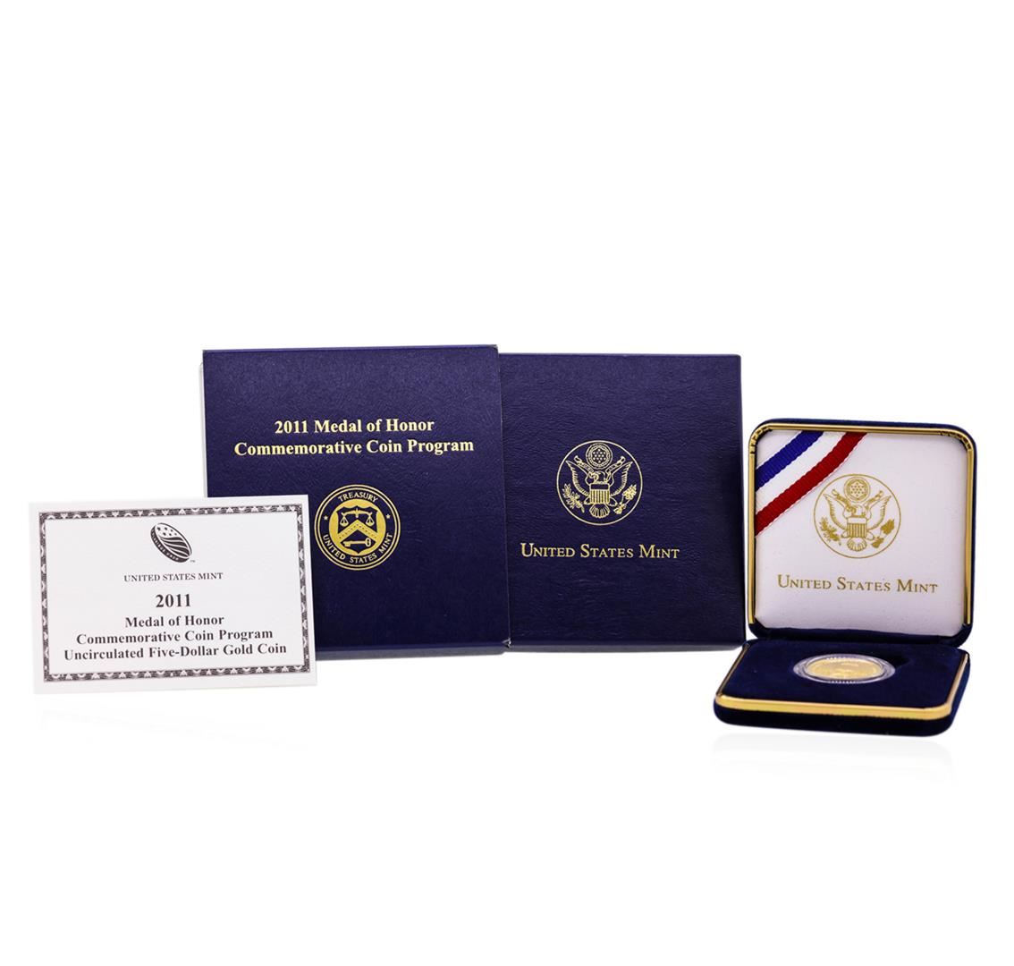 One 2011 $5 Uncirculated Medal of Honor Gold Coin.
