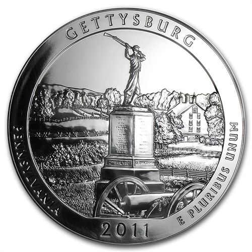 2011 5 oz Silver ATB Gettysburg MS-69 DMPL First Strike **|**|** Year: 2011 ; Mint Mark: MS-69 DMPL ; Denomination: $0.25 ; MSRP: $300
