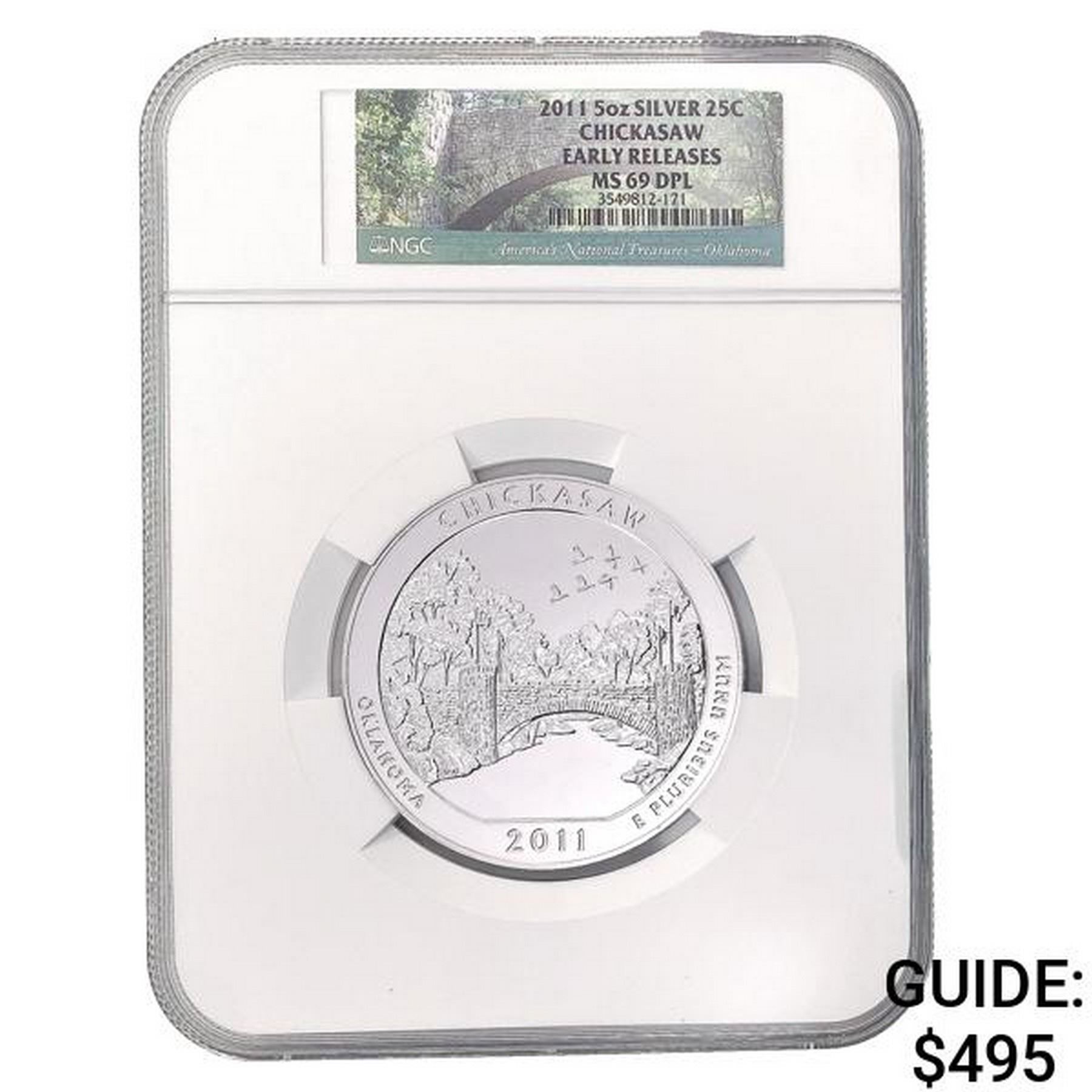 2011 5oz 25C Chickasaw Early Release NGC MS69 DPL
