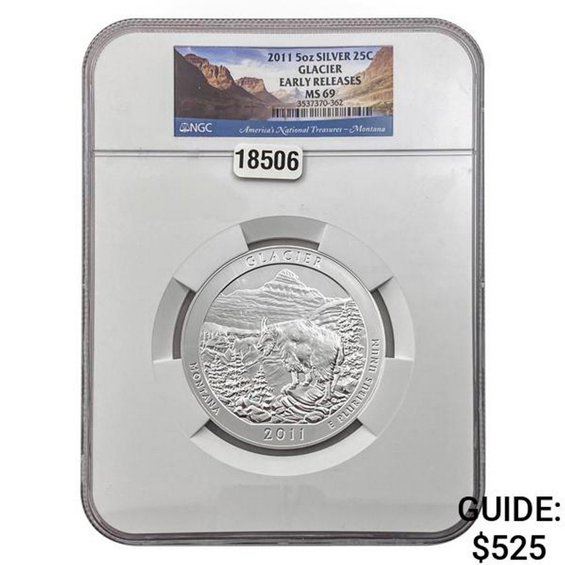 2011 5oz Silver 25C Glacier NGC MS69 Early Release