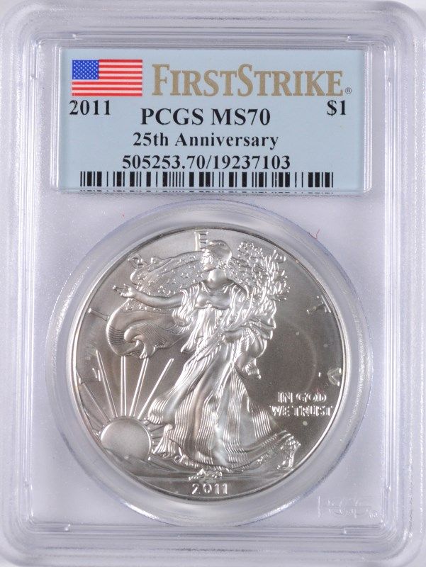 2011 AMERICAN SILVER EAGLE 25th ANNIVERSARY, PCGS MS-70! FIRST STRIKE!