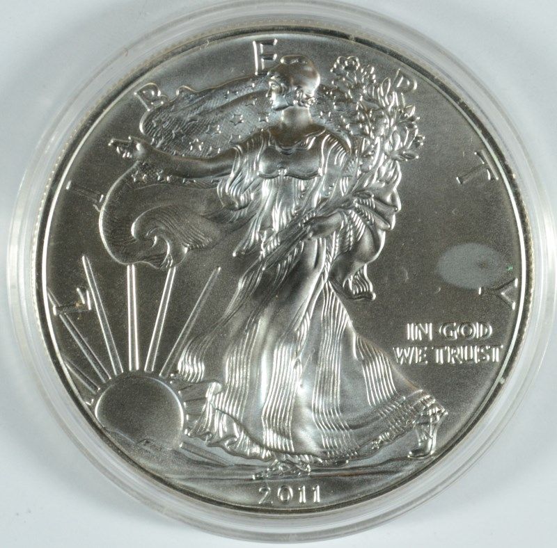 2011 AMERICAN SILVER EAGLE, GEM BU IN CAPSULE