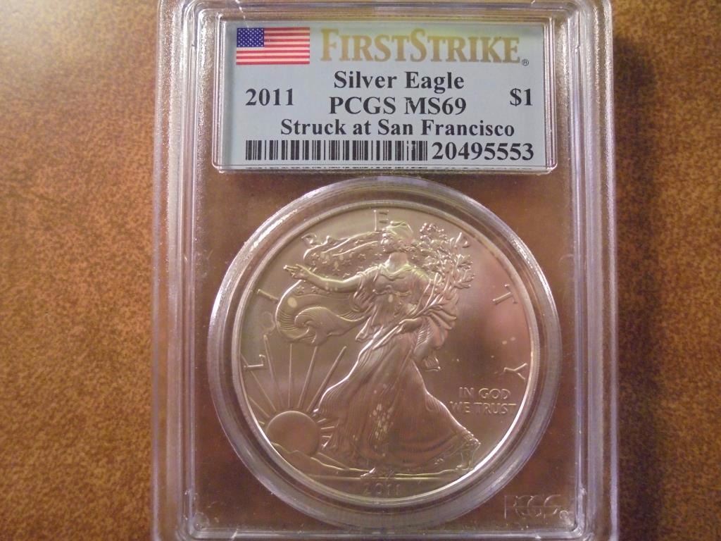 2011 AMERICAN SILVER EAGLE PCGS MS69 1ST STRIKE