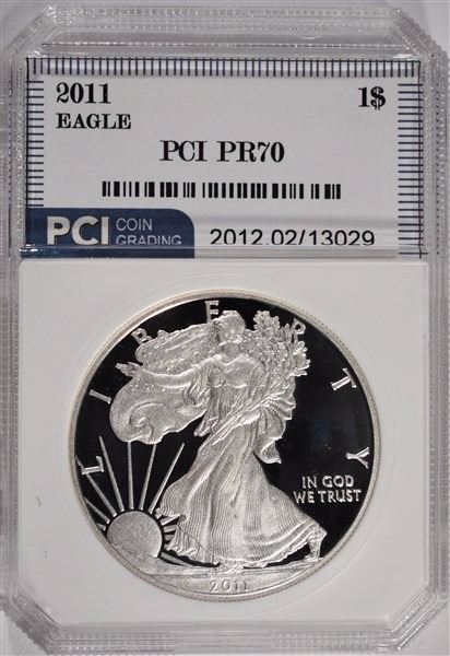 2011 AMERICAN SILVER EAGLE, PCI PERECT GEM PROOF DCAM ESTIMATE $75 - $85.