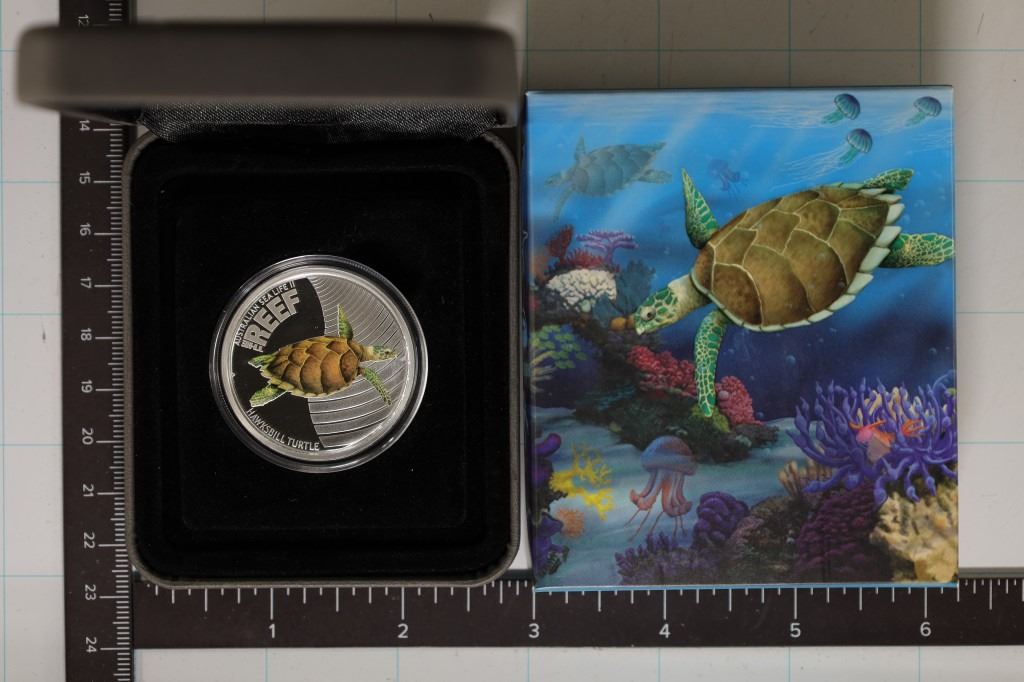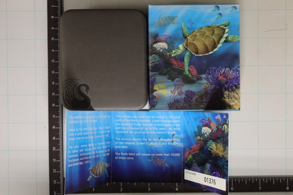COIN BY THE PERTH MINT, 1/2 OZ. .999 FINE SILVER #01376 OF 10,000, IN ORIGINAL MINT PACKAGING WITH CERTIFICATE FROM THE AUSTRALIAN SEA LIFE II THE REEF