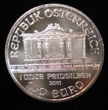 2011 AUSTRIAN PHILHARMONIC 1,50 EURO, ONE OUNCE .999 SILVER