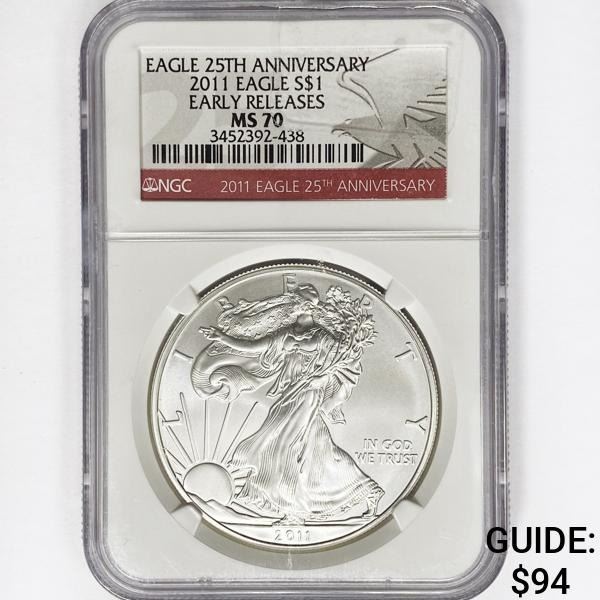 2011 American Silver Eagle NGC MS70 25th Ann