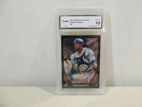 2011 BOWMAN CHROME #6 GRADED BASEBALL CARD CARLOS SANTANA. GRADED GEM MT 10 BY GMA. AS SHOWN. VIEW PICTURE FOR DETAIL.