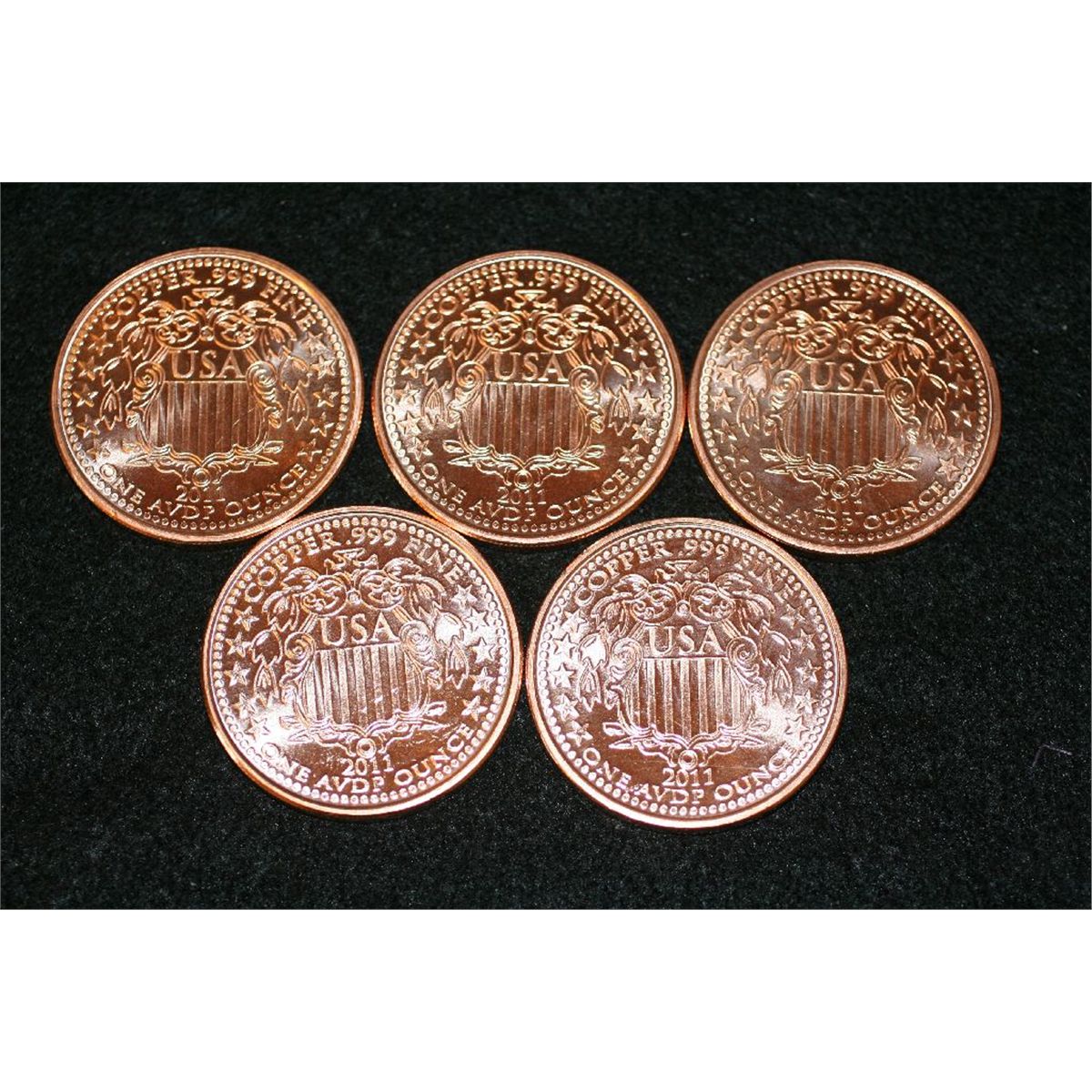 2011 Buffalo Copper Round, .999 Fine 1 Oz., lot of 5