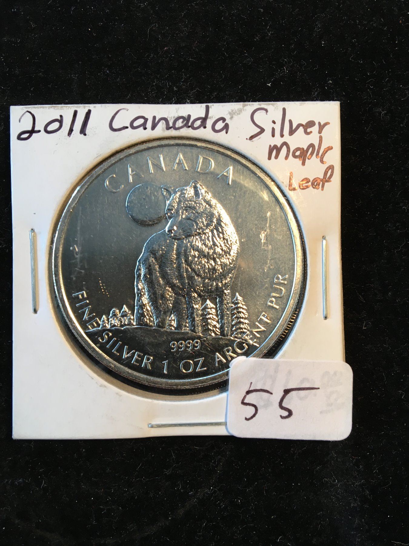 CANADIAN WILDLIFE SERIES! TIMBER WOLF 1OZ SILVER MAPLE LEAF