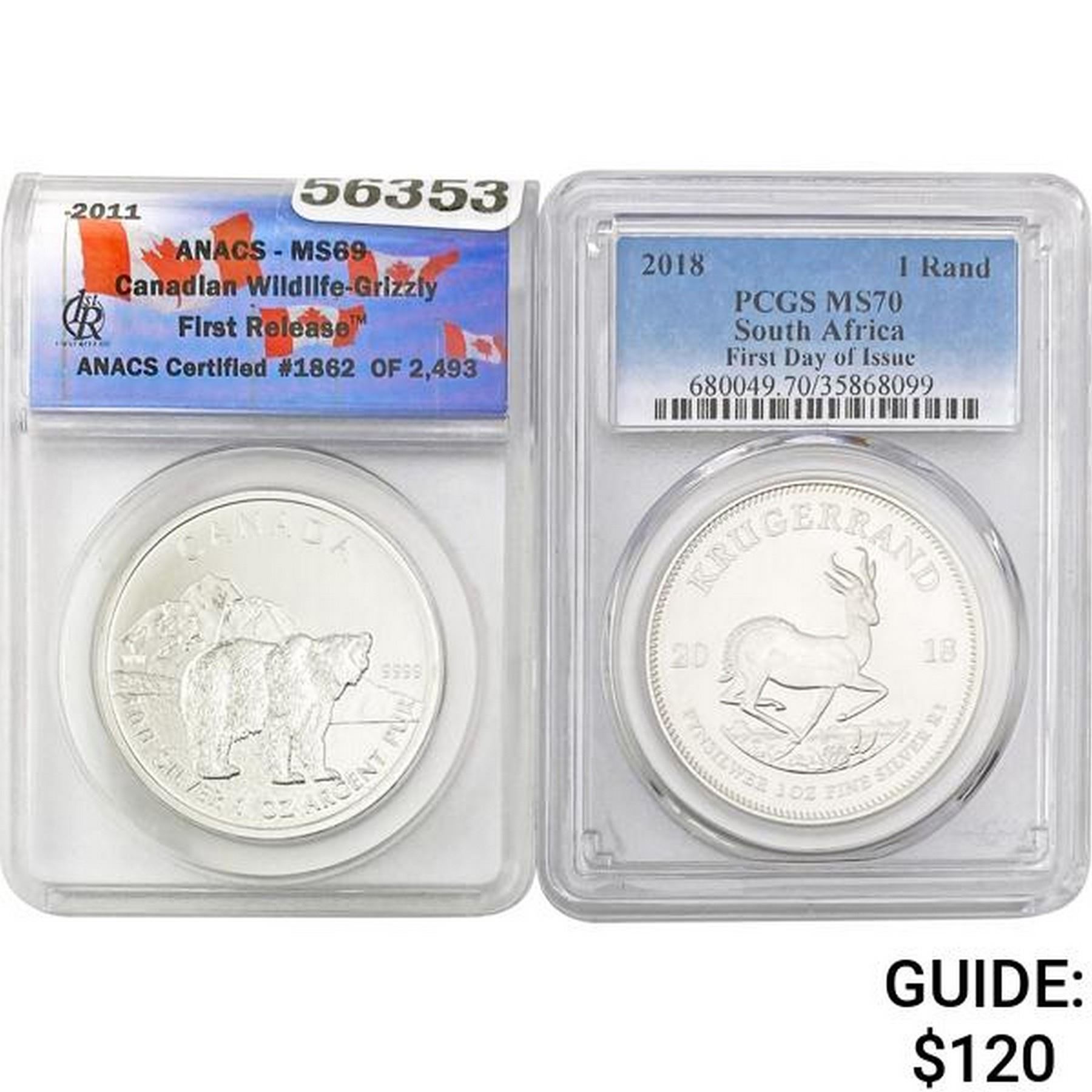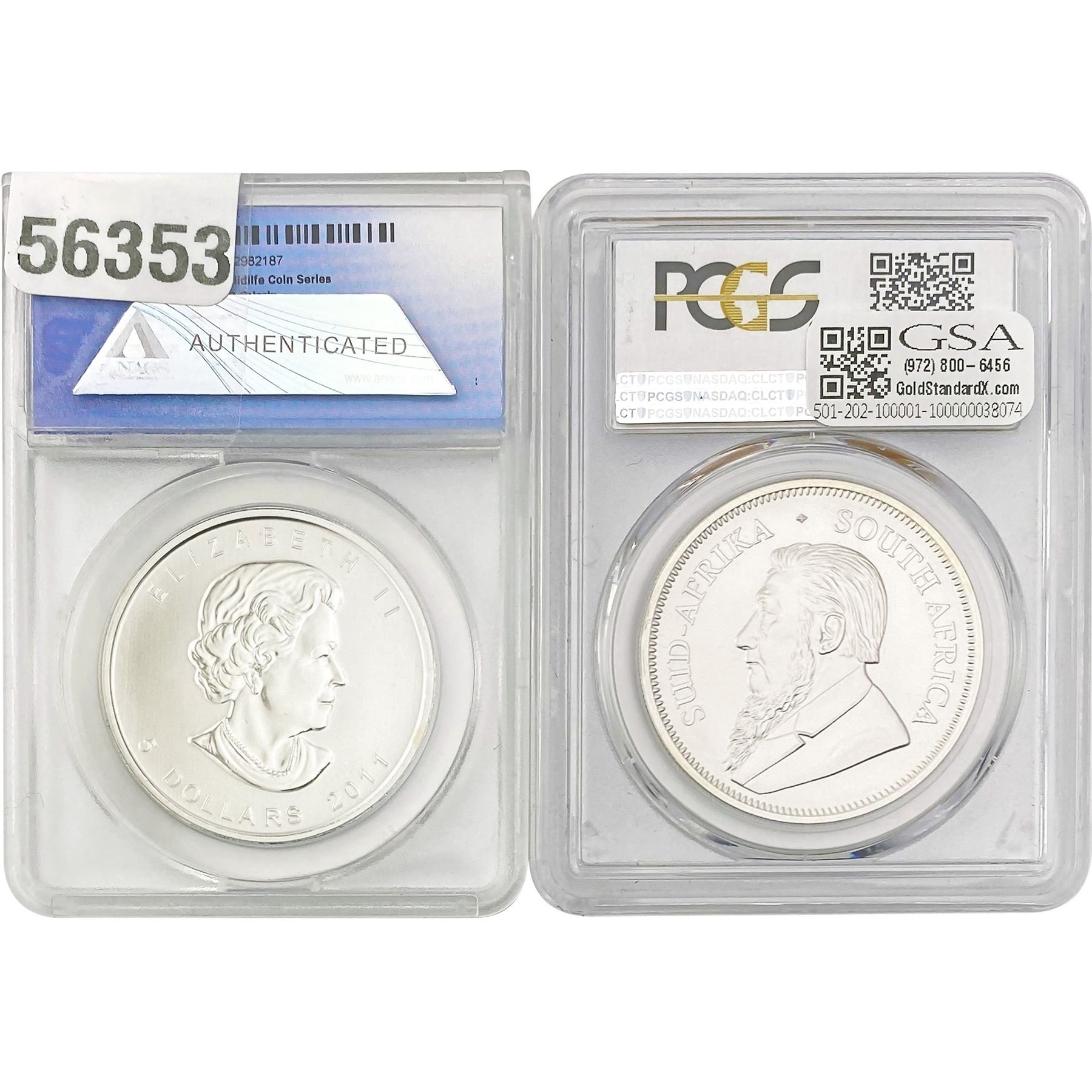 e. Coins sold referencing a third-party grading service are sold “AS IS” without any express or implied warranty, except for a guarantee by GSA that they are genuine. Removal or alteration of the holder, voids all of Bidder’s claims concerning that Product. Certain warranties may be available from the grading services and Bidders are referred to them for further details: Numismatic Guaranty Corporation (NGC), PO Box 4776, Sarasota, FL 34230, www.ngccoin.com/services/writtenguarantee.asp; Professional Coin Grading Services (PCGS), PO Box 9458, Newport Beach, CA 92658, www.pcgs.com/guarantee.html; ANACS, 6555 S. Kenton St., Ste. 303, Englewood, CO 80111; and Independent Coin Grading Co. (ICG), 7901 East Bellview, Ave., Suite 50, Englewood, CO 80111.