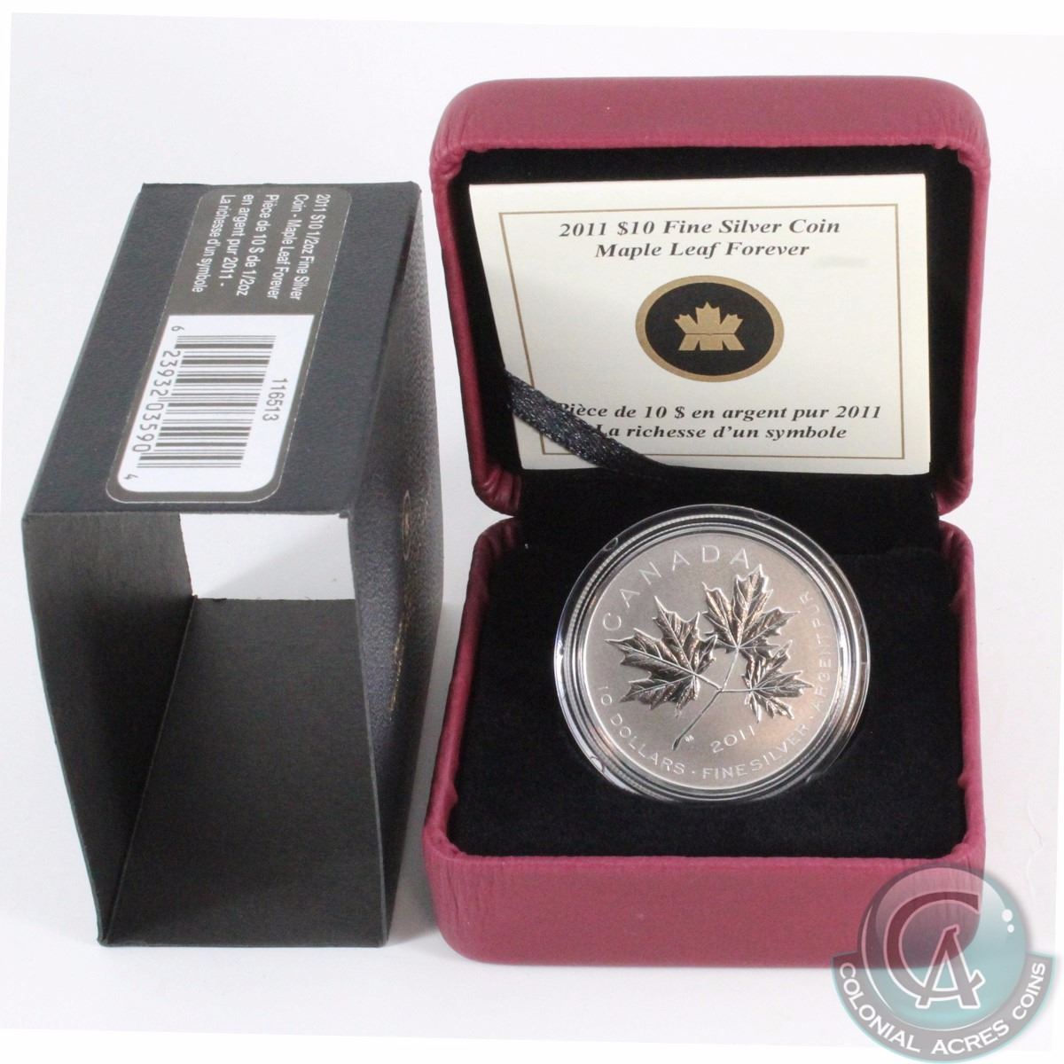 2011 Canada $10 1/2oz Maple Leaf Forever Fine Silver Coin (Tax Exempt). Coin comes with all original packaging issued by the Royal Canadian Mint.
