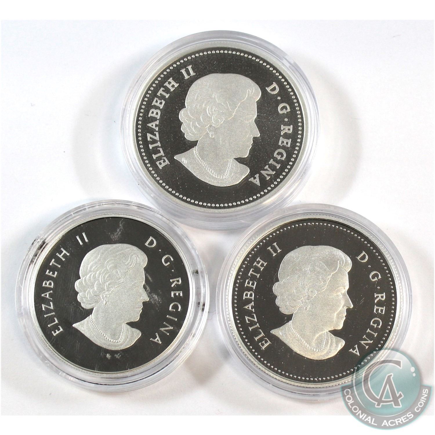 2011 Canada $10 Peregrine Falcon, 2013 $20 The Beaver & 2014 $5 Bank Notes: Lion on the Mountain Fine Silver Coins in Capsules Only (capsules are scratched and 2011 has residue on capsule). 3pcs (TAX Exempt)