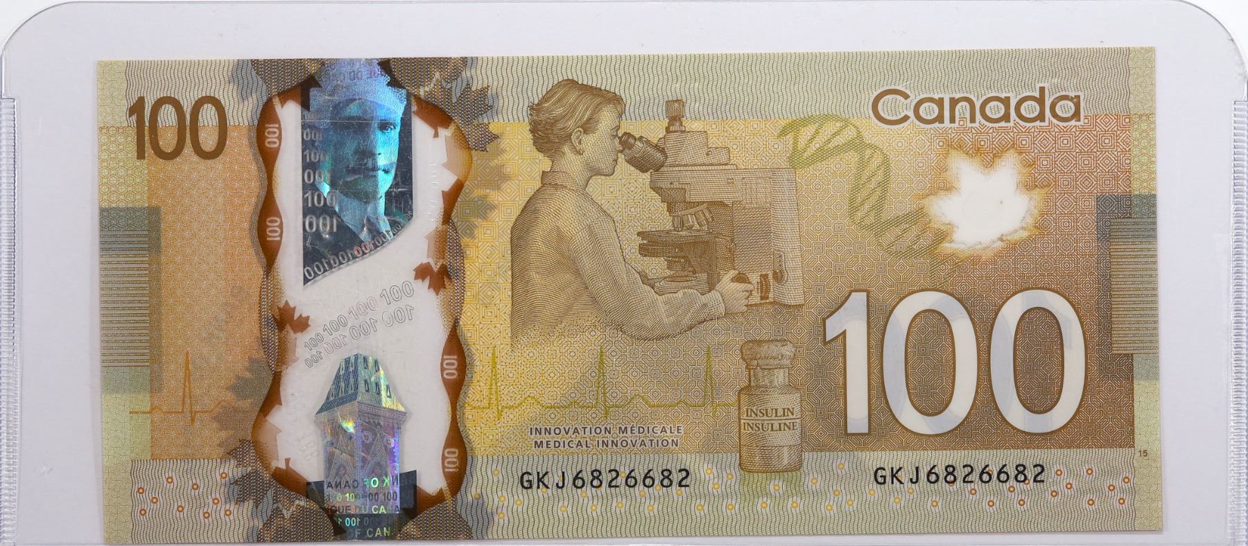 2011 Canada $100 BC-73c-N10-iii; Wilkins-Poloz, Repeater, Four-Digit Cycle, GKJ6826682; VF