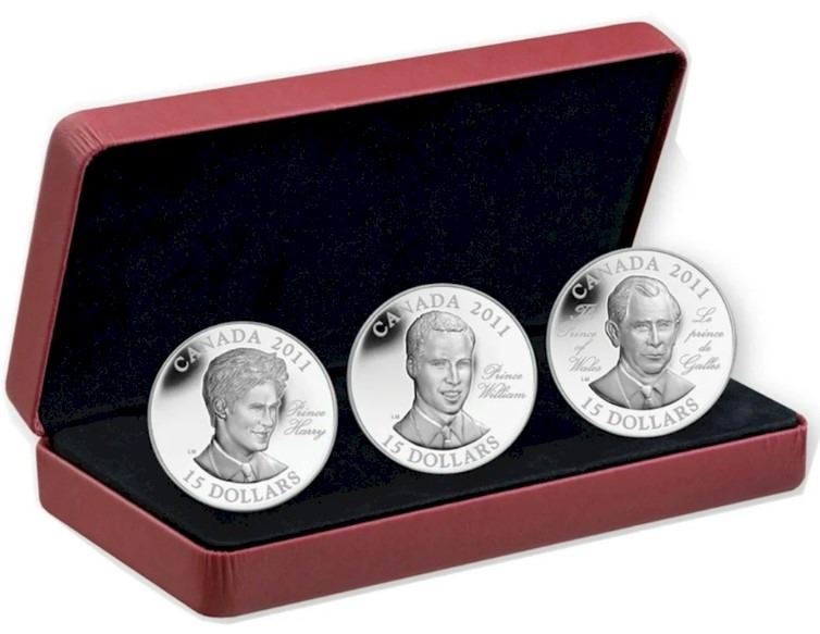 2011 Canada $15 Continuity of the Crown Sterling Silver 3-Coin Set.