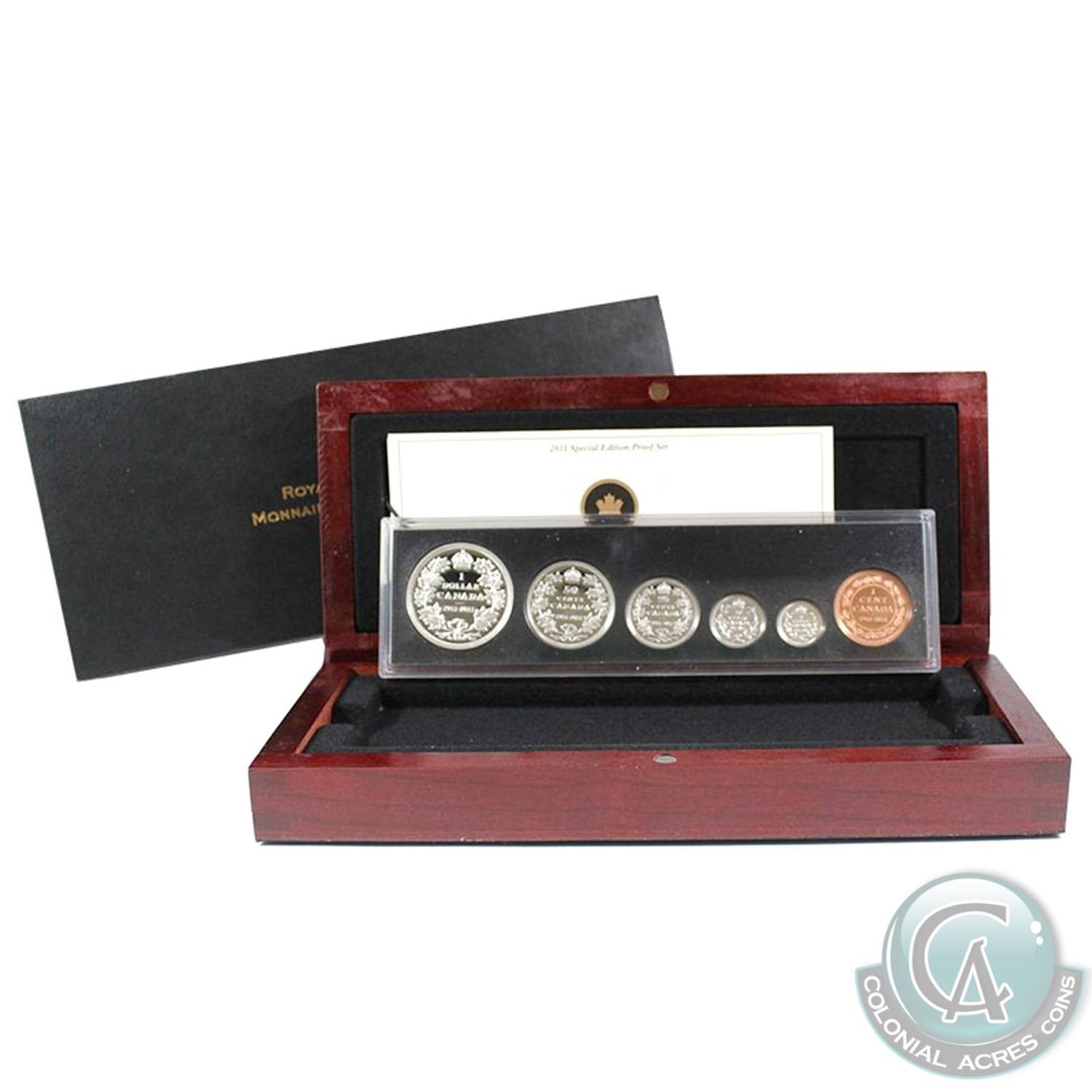 2011 Canada 1911 Silver Dollar Centennial Special Edition Proof Set. Coins may contain light toning. Plastic holder contains light scratches while outer box is tattered.