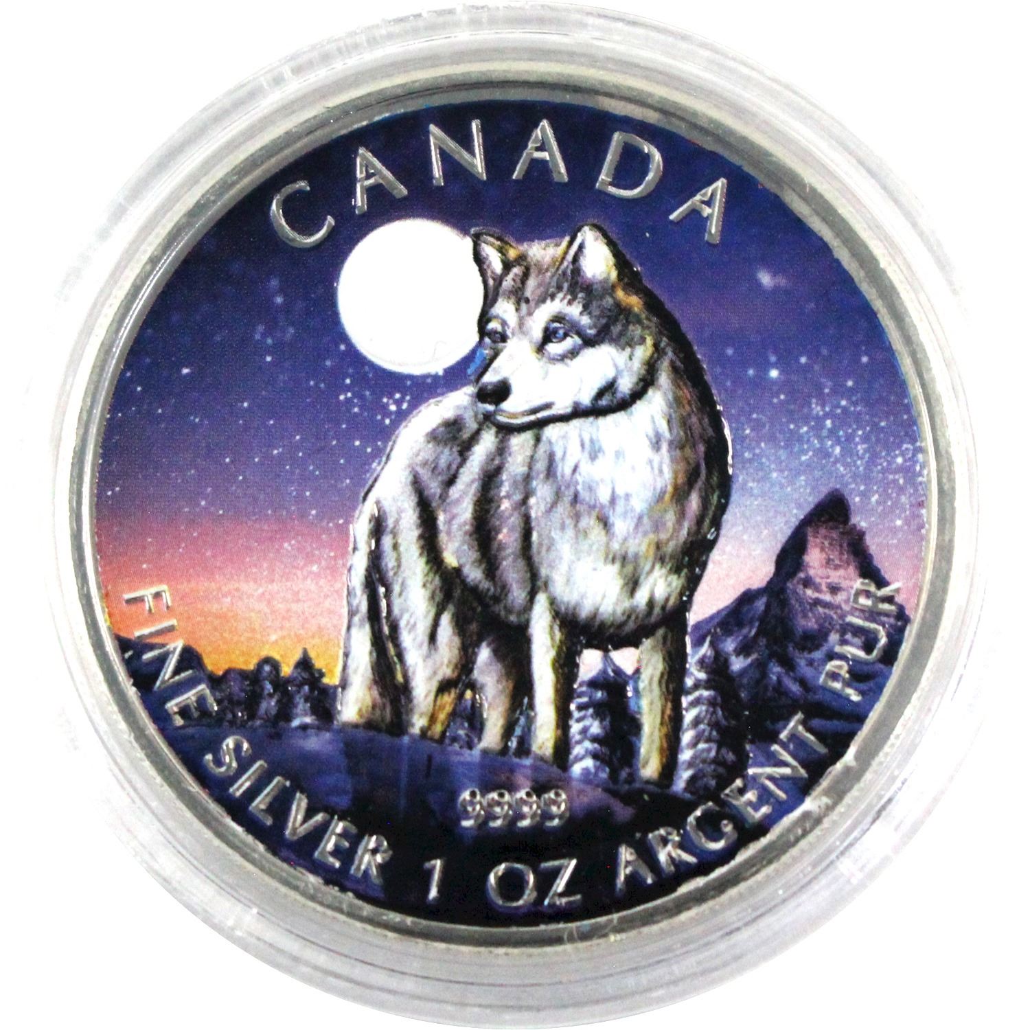 2011 Canada 1oz Coloured Wildlife Series - Wolf .9999 Fine Silver Coin in Capsule. (TAX Exempt)