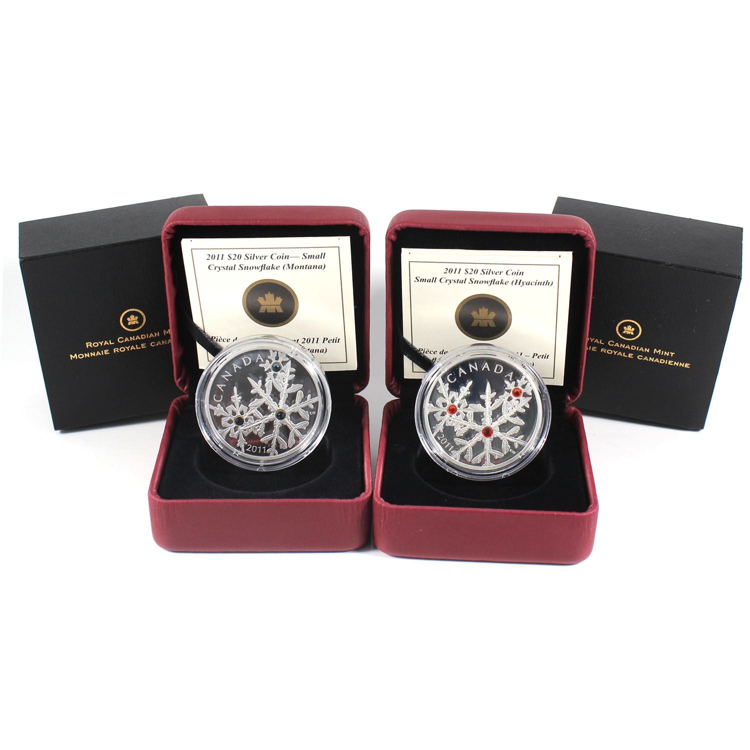 2011 Canada $20 Crystal Snowflake Fine Silver Coins - Montana & Hyacinth. 2pcs (TAX Exempt)