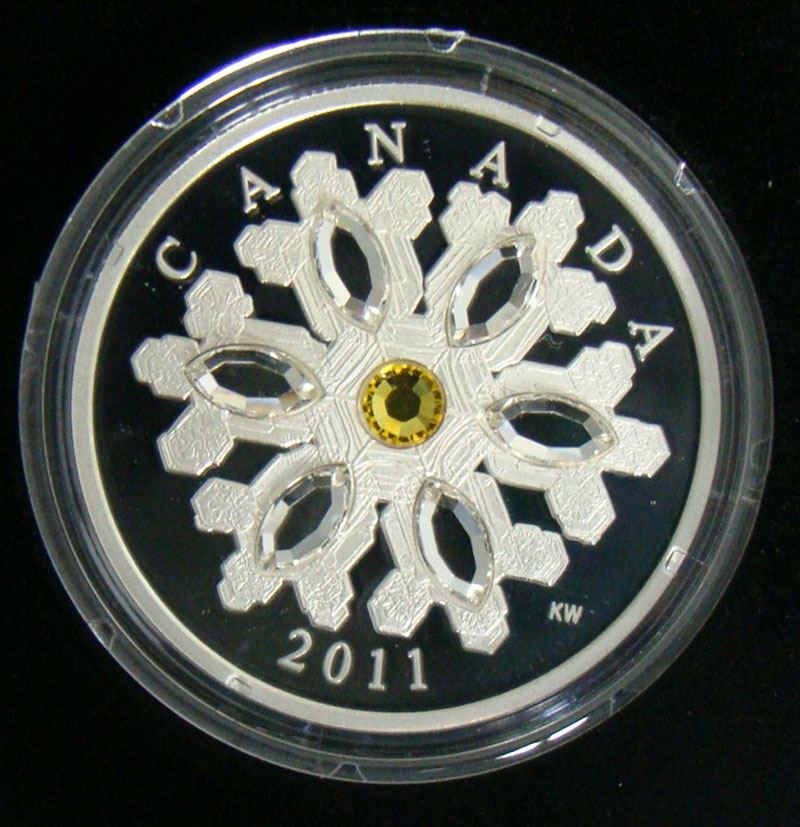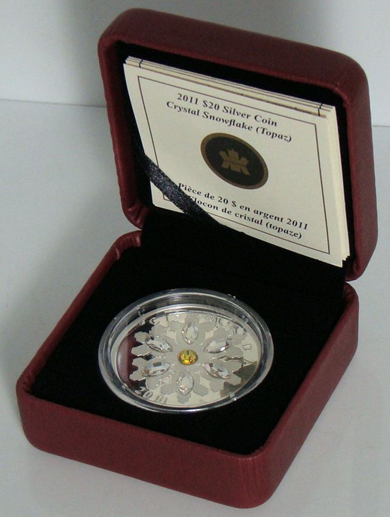 2011 Canada $20 Fine Silver Coin Crystal Snowflake (Topaz) Ephemeral Miracle, Frozen in Time NIB w/COA - NO TAX