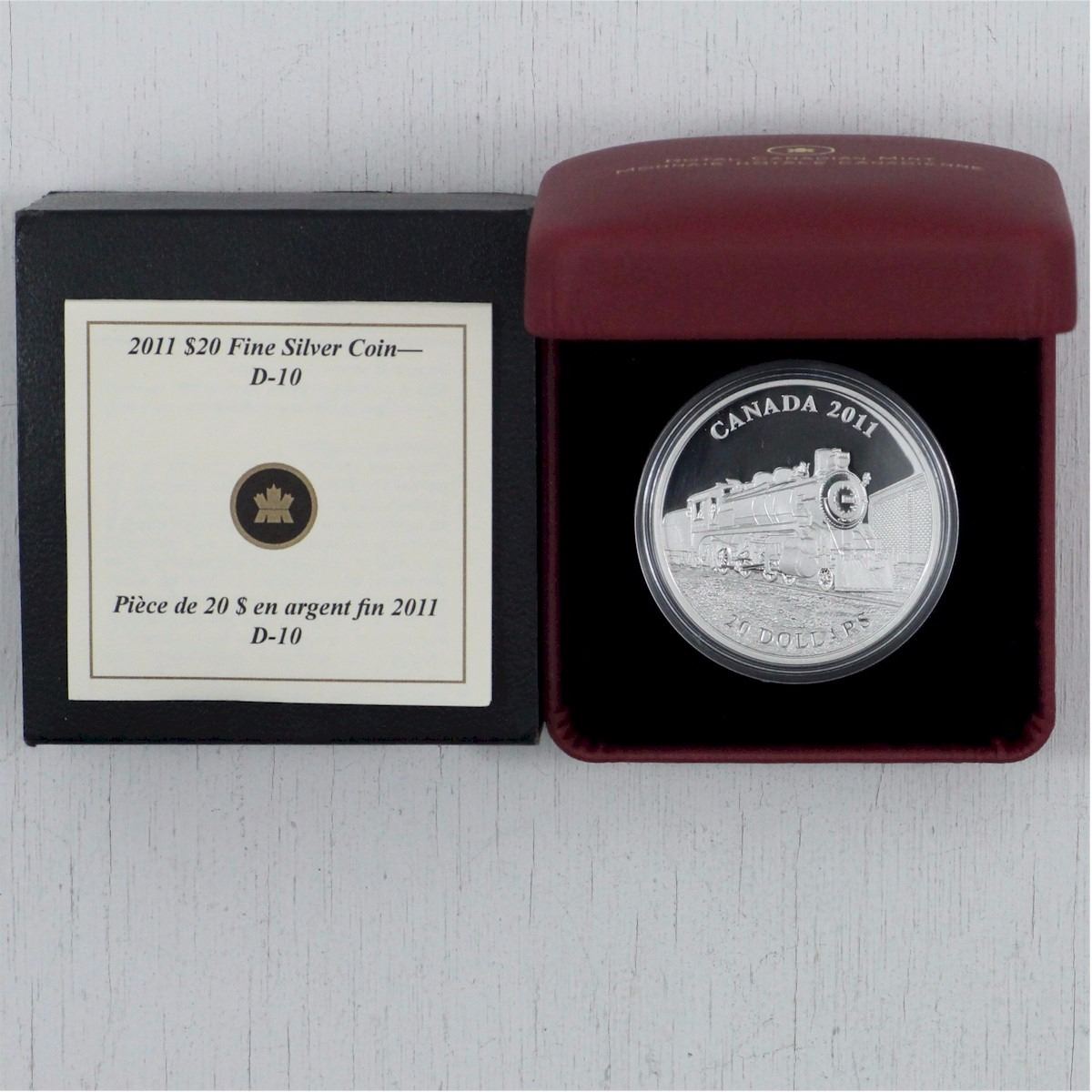 2011 Canada $20 Great Canadian Locomotive D10 Fine Silver Coin issued by the RCM (TAX Exempt) Buyers Premium will be added on all items as per our terms of sale. We accept Paypal, Credit Card, E-Transfer Payments, Cheque or Money Orders (there is an additional 3% fee for using Paypal or Credit Card). All invoices will be emailed immediately following the auction, please contact us if you would like to pay by credit card or receive a new revised lower total for mailing in payment or sending an e-transfer (3% discount). All Items Are Sold "AS IS", no returns