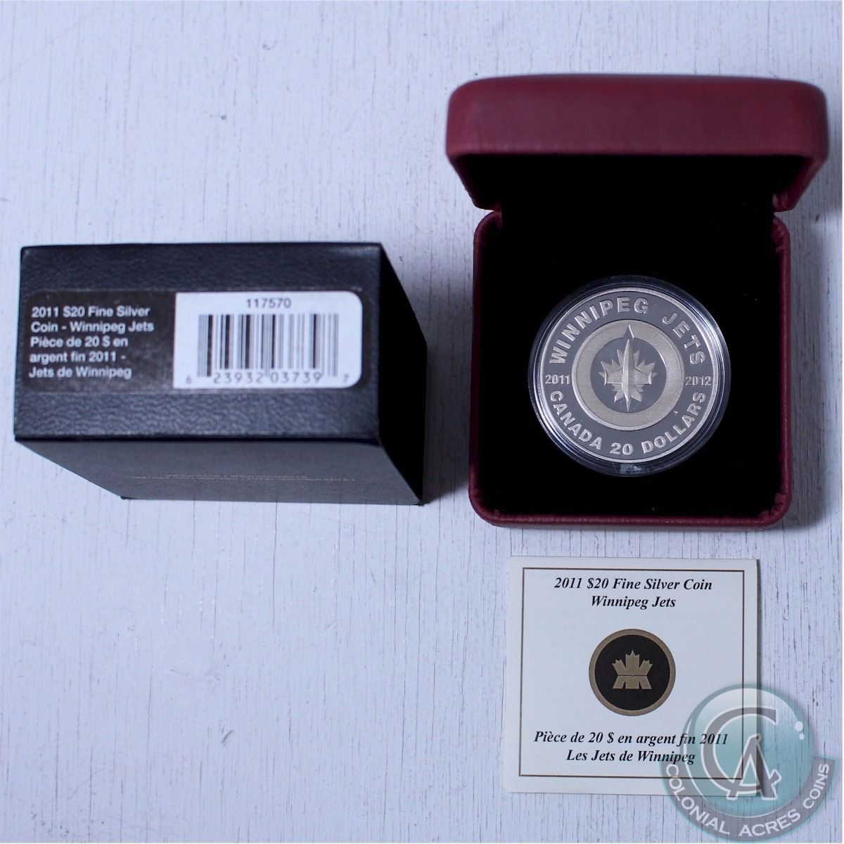 2011 Canada $20 Winnipeg Jets Fine Silver Coin (TAX Exempt). Comes with all original Mint packaging and COA (toned, outer cardboard sleeve has some residue)