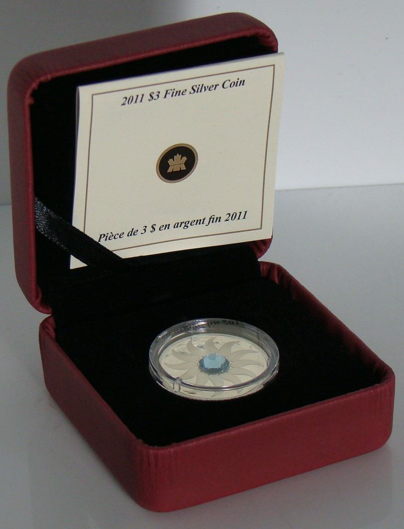 2011 Canadian $3 Fine Silver Coin - Birthstone Collection - March (Aquamarine) - Comes In Original Box With COA - NO TAX